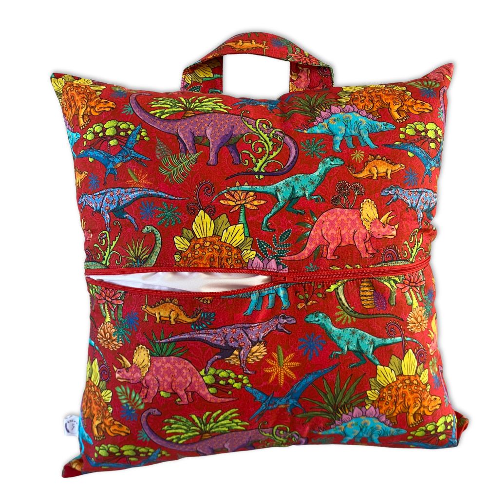 Dinosaures hyper colorés pour enfants, pochette intégrée et coussin intérieur optionnel pour lire et transporter vos livres facilement !