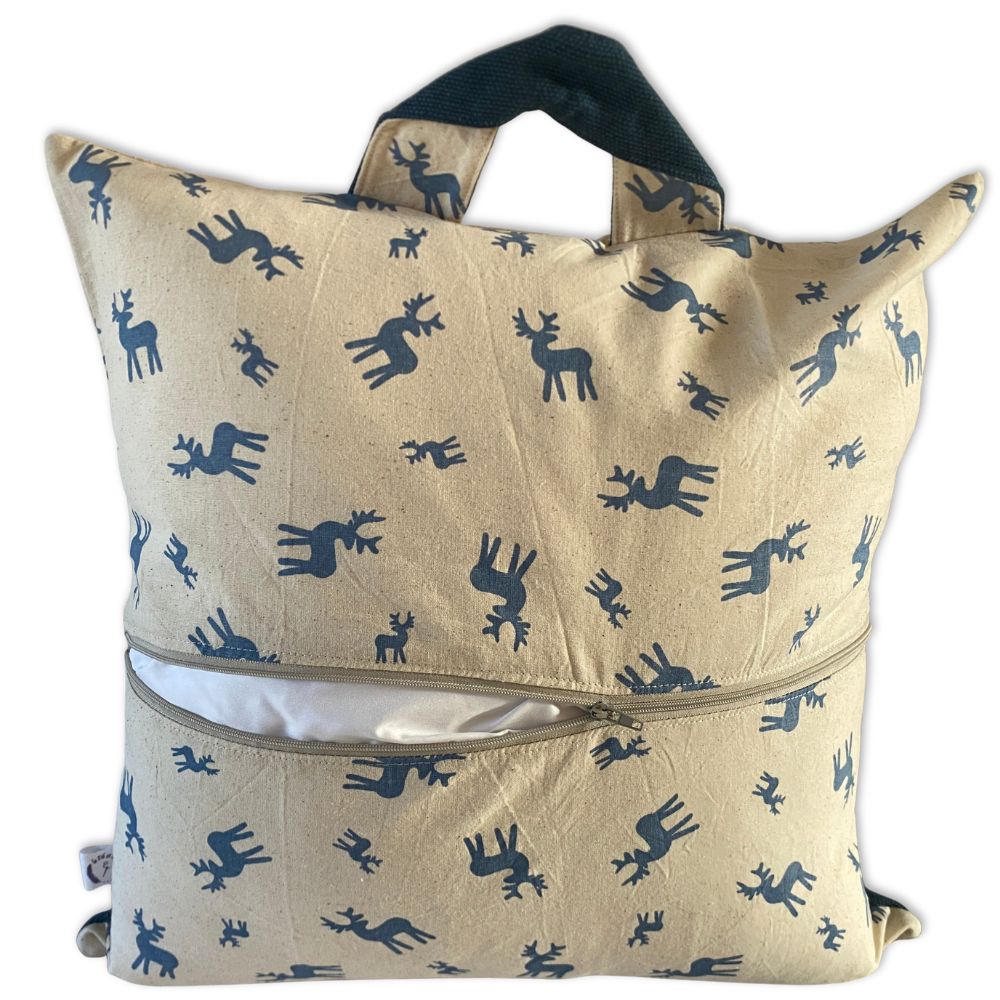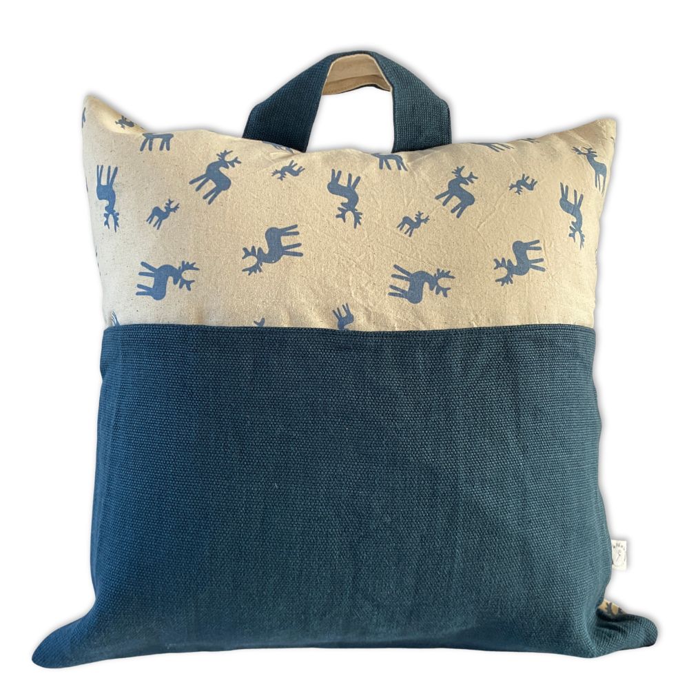 🦌 Housse de coussin motif Rennes bleus sur fond beige